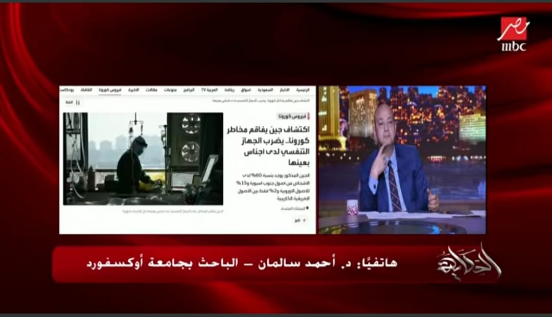Adib a d’abord rappelé le constat fait par la majorité des Egyptiens : pourquoi les chiffres de cas de coronavirus sont énormes dans certains pays du monde par centaine de milliers, tandis que cela n’est pas le cas en Egypte ? Pour y répondre, il s’est entretenu au téléphone avec Dr Ahmed Salman, chercheur à l’Université d’Oxford. Adib a reconnu que l’Etat a déployé un effort considérable, mais il a posé une question : s’agit-il seulement des efforts déployés ou y a-t-il une raison médicale ? A cet égard, il a assuré qu’en Grande-Bretagne, ils ont tout récemment découvert la raison : pourquoi dans certains pays il y a beaucoup de cas et dans d’autres non ? Adib a rappelé surtout la période où la Grande-Bretagne enregistrait au quotidien 50.000 cas, alors qu’en Egypte 300 cas seulement étaient enregistrés. Et de renchérir que dans les pays d’Asie, d’Europe ou encore d’Amérique latine, les chiffres étaient énormes. Dr Ahmed Salman, chercheur à Oxford, a assuré qu’il y a un élément qui peut doubler le nombre des cas ou qui aide à découvrir quels seront les cas potentiels.