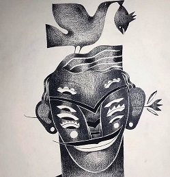 Le moment opportun est venu, lorsqu’il sentit qu’il pouvait être lui-même et non une copie de son père, sa première exposition fut dans la salle Picasso 2. Un ensemble de peintures en noir et blanc qui présageait un grand artiste. L’artiste sculpte ses personnages sur papier, il crée un état entre la masse et le vide. Il vous fait regarder comme si vous étiez l’un des côtés de l’œuvre d’art. Bien que les dessins soient tous d’une seule couleur, il a su utiliser tous les degrés de couleurs et avec une sensibilité extraordinaire qui surprend devant les peintures.