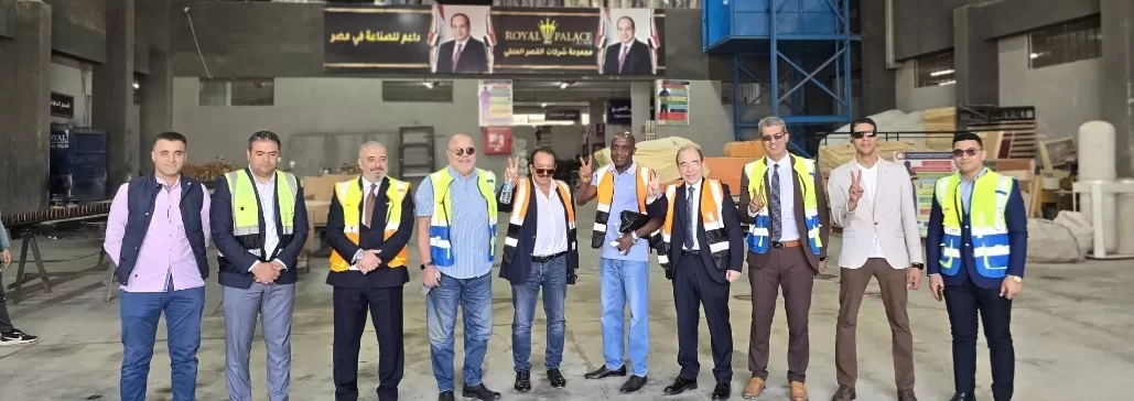 Cette visite s’inscrit dans le cadre de la mise en œuvre du mémorandum d’entente et du partenariat stratégique signés entre le groupe Royal Palace et le groupe « A.M. International », dirigé par le général de division Hisham Ahmed Abdel Ghaffar Qartam. Ce partenariat a pour objectif d’ouvrir de nouvelles perspectives de coopération industrielle et commerciale entre l’Égypte et les pays d’Afrique de l’Ouest. À l’occasion du lancement de Royal Palace A.M. International Group, un important groupe industriel implanté en Égypte et au Ghana, la visite a permis aux participants de découvrir en détail les usines du groupe, notamment ses lignes de production et les technologies de pointe utilisées pour la fabrication de meubles, de matelas et de mousse. Cela s’inscrit dans le cadre d’un plan d’expansion ambitieux mis en œuvre par le groupe, comprenant une croissance verticale et horizontale. Le groupe Royal Palace a son siège social dans la zone industrielle d’Inshas, et un complexe industriel entièrement intégré est en cours de construction sur un terrain de 40 hectares (100 acres) situé au kilomètre 56 de la route du désert reliant Alexandrie au Caire.
