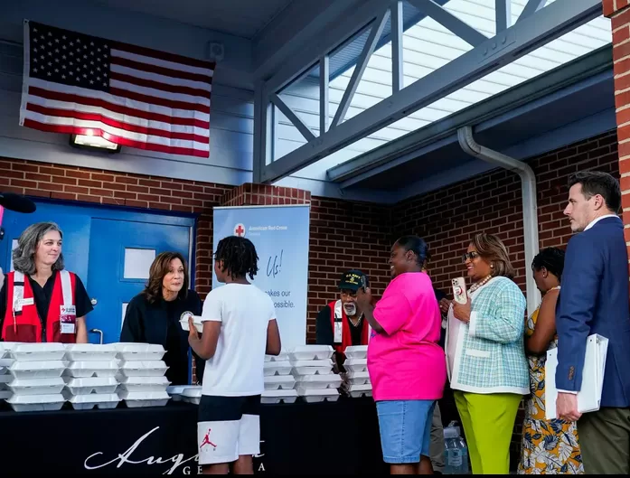 En parallèle, Kamala Harris s’est rendue à Augusta, en Géorgie, et a été à la rencontre des habitants du quartier de Meadowbrook avec la maire de la ville et où elle a participé à une distribution alimentaire.