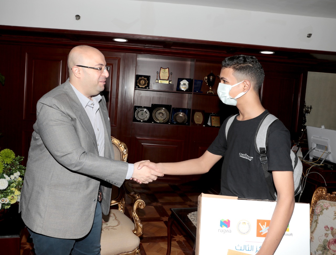 Le président Abdel Fattah Al-Sissi accorde un vif intérêt aux talentueux, à travers un soutien pratique par la mise en place de projets nationaux dans les domaines des communications, des technologies et de la recherche scientifique, a affirmé le gouverneur de Beni Soueif, Mohamed Hany, qui a reçu, dimanche, l’étudiant Abdel Azim Ahmed Khairy qui a remporté la troisième place au niveau de la République dans le programme Microsoft, dans le cadre du concours des 50 meilleurs étudiants à l’échelle mondiale dans le programme Microsoft.