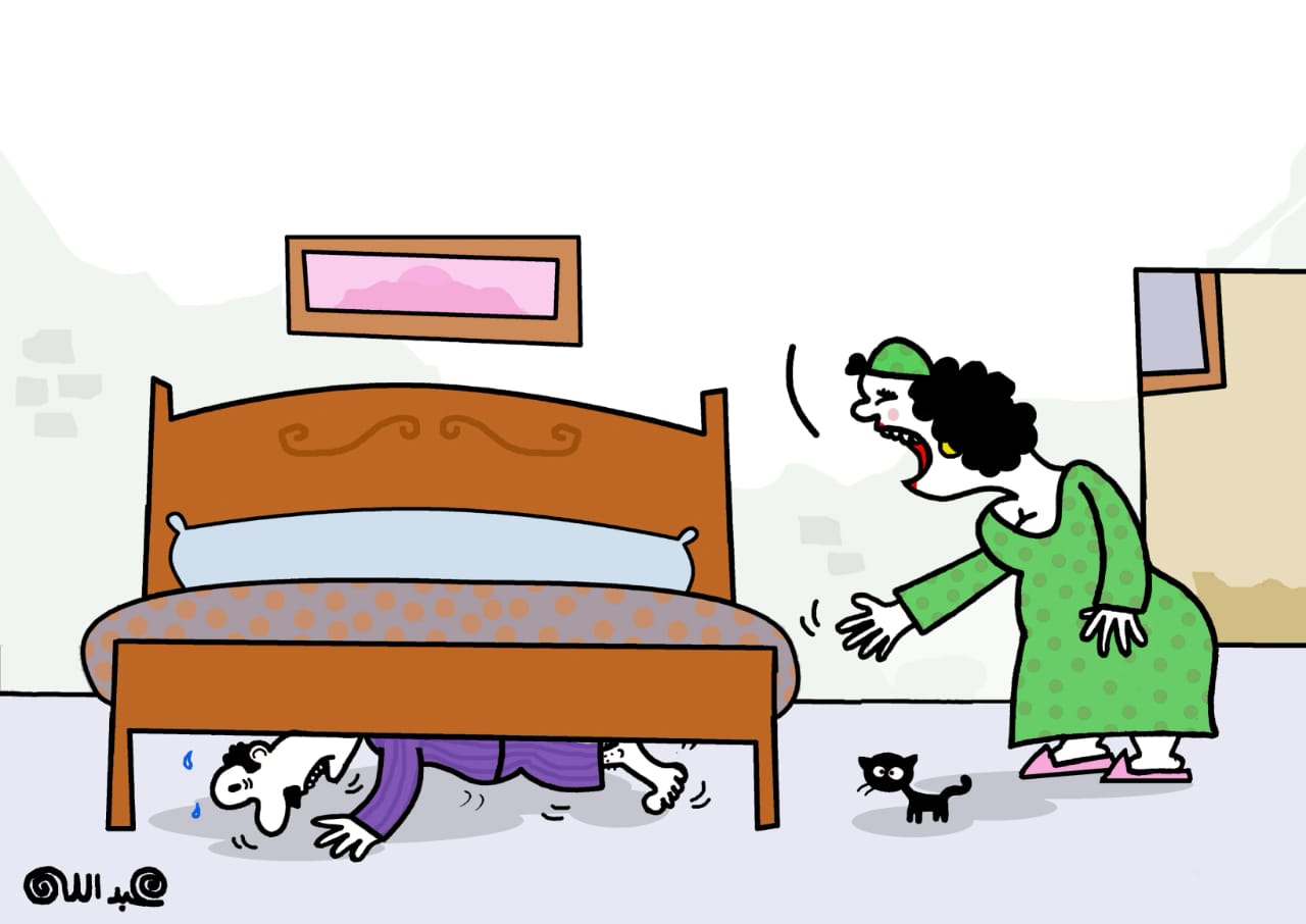 Quand il s’agit du coronavirus, beaucoup de gens évoquent le laxisme ou la peur excessive. Car, les deux attitudes existent. Il y a ceux qui se montrent laxistes en appliquant les mesures préventives et d’autres au contraire qui ont constamment peur et qui exagèrent. Entre les deux, le juste milieu s’impose comme étant la meilleure solution. Sur le site d’Al-Masry Al-Youm, le caricaturiste Abdallah dépeint un homme qui se cache sous le lit de peur d’être atteint du coronavirus. Sa femme essaye de le rassurer… en vain. Alors, elle lui dit : « Notre voisin qui a toussé n’est plus dans le balcon, n’aie pas peur ».
